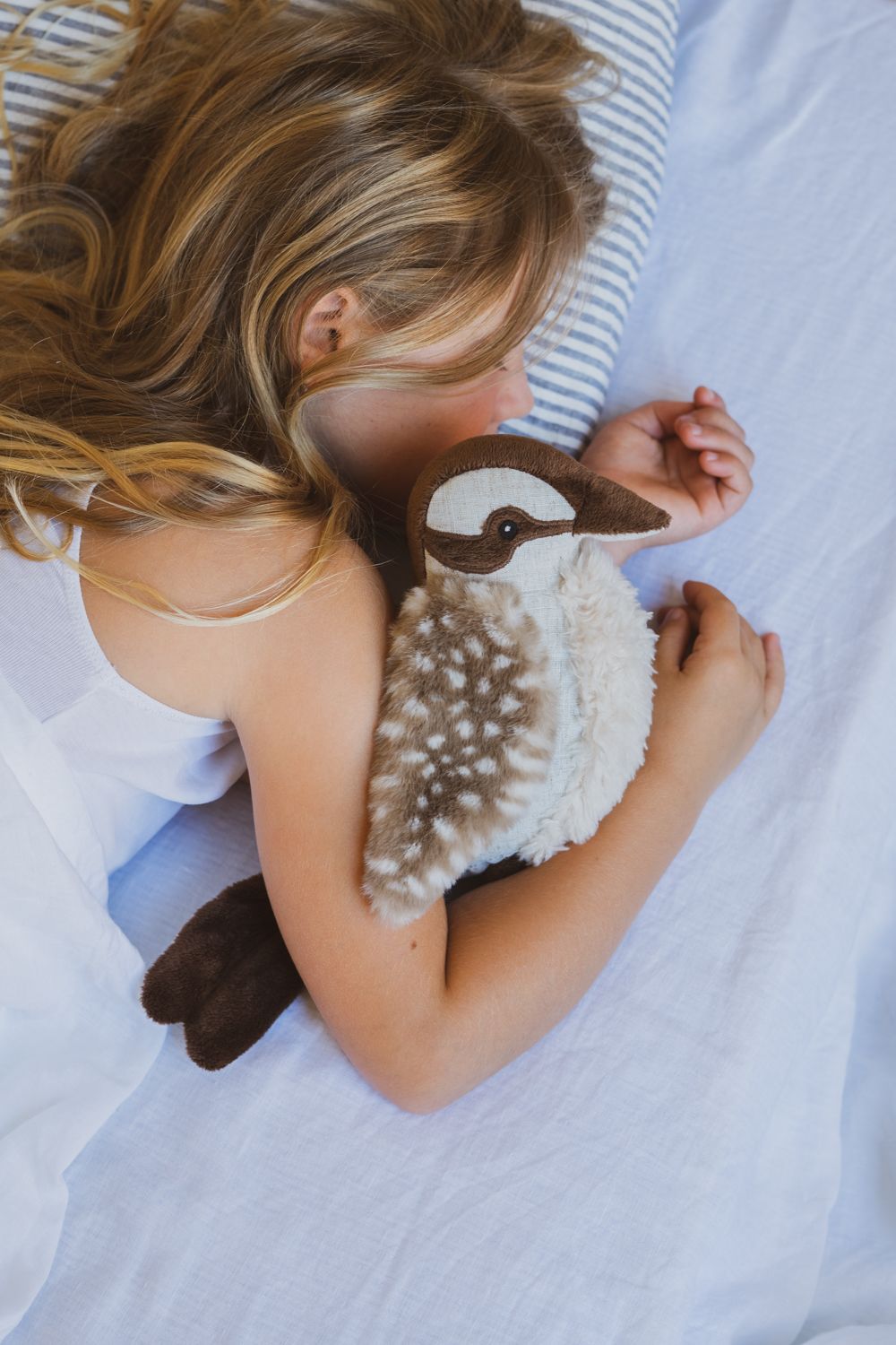 Ken the Kookaburra is the self-appointed king of the bush, but his friends don’t protest as Ken has earned his title. Living on a quaint million-acre cattle station 400km west of Byron Bay, Ken always knows how to cheer somebody up with his witty jokes & infectious laugh. This, coupled with his supremely soft, fluffy chest & silky-smooth wings, makes him the perfect king & best friend when the chips are down.