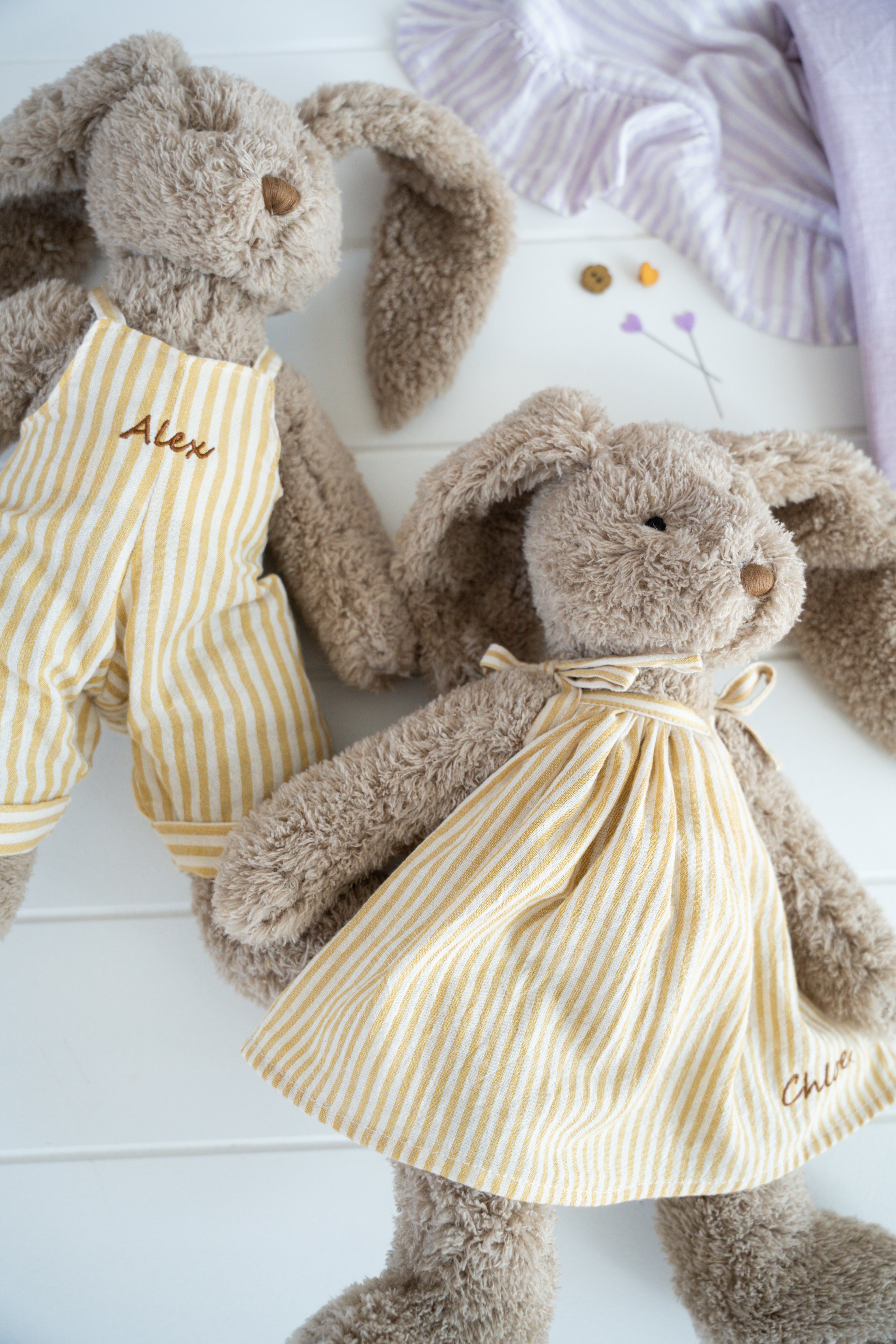 Order Mr Honey Bunny & for no extra cost, we will embroider one name on his overalls. Personalise your bunny with beautiful embroidery, crafted right here in Melbourne.