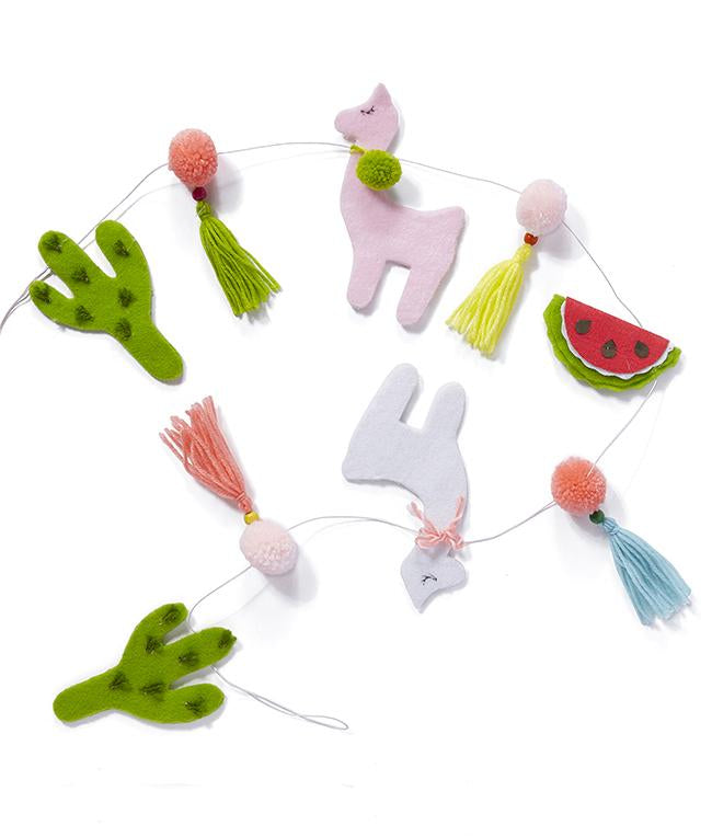 The Festival Garland adds just the right amount of fun for any situation. Use it in the nursery, bedroom or at a party to add a pop of colour. Featuring pompoms, llama, cacti & watermelon. Let the festivities begin!