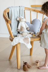 Clover the Cow likes a chat. She is quite the gossip, in fact. Always up with the latest news from the paddock, Clover's got the lowdown from the bull's side of the fence too. This soft & snuggly patchwork cow can't wait to give you her precious friendship & share her secrets from the farmyard.