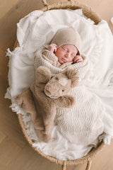 The quintessential gift for a newborn or toddler, our loveable Grow Sets include a matching Mini Rattle, Hoochy Coochie comforter & Soft Toy Animal.