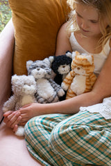 Chloe is a brave little kitten who loves to climb! Trees, shelves, & especially onto laps - she can zoom up them all with her tiny paws & swishy tail. But when it’s time to eat, Chloe is picky. She sniffs the tinned tuna… then hmmph! —no thanks. Like her Mum, Chloe the Cat, this fancy little kitten prefers fresh, tasty bites of sashimi. Only the best for her royal whiskers! Meow-jestic!