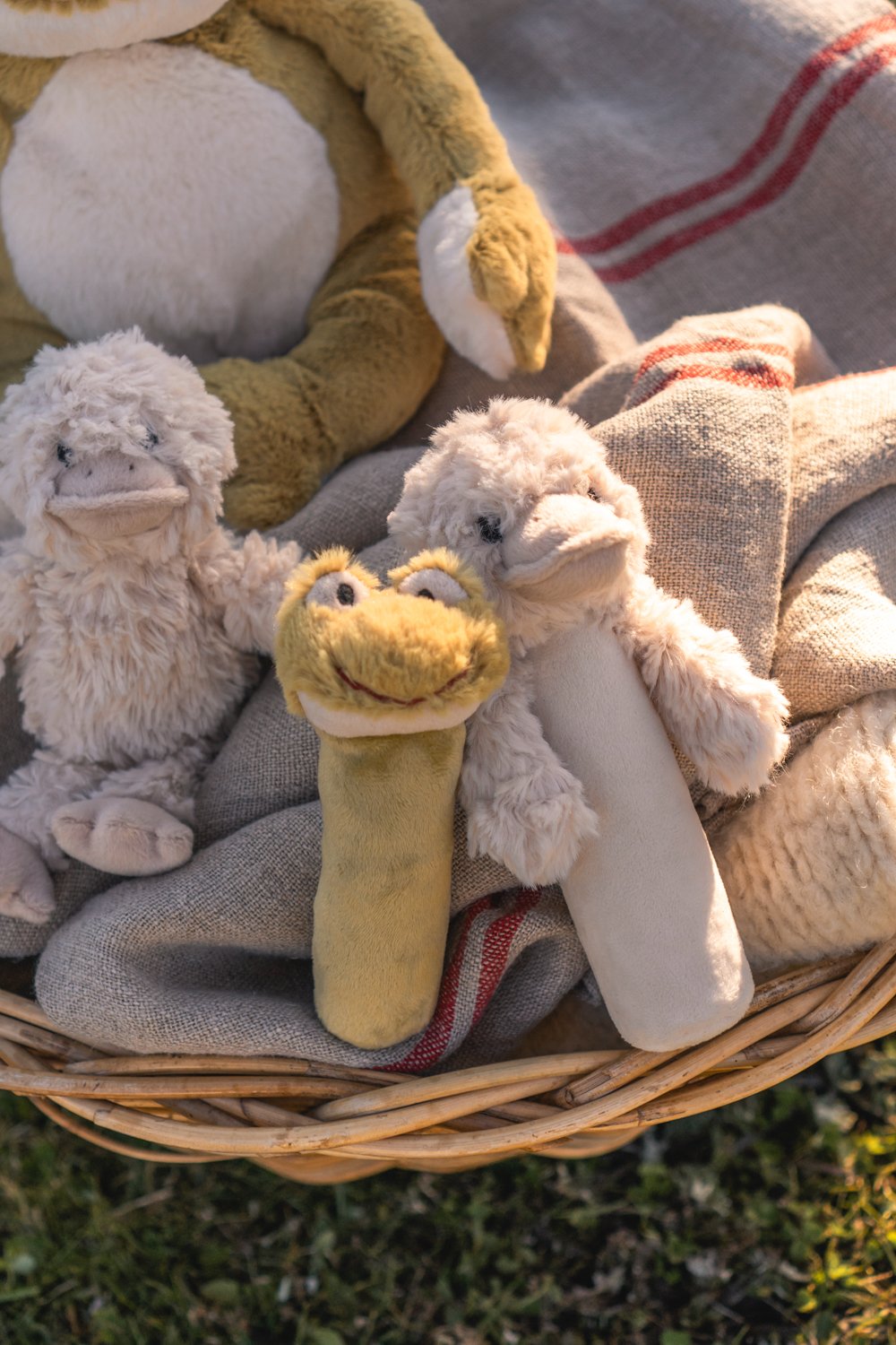 Frank loves eating slime but may have overdone it because there’s a rattling sound in his tummy. Since dancing aids indigestion, he plans to shake, shake, shake his booty with Bill The Duck Rattle, who also tends to overindulge. If you know a small child with a penchant for rattles, Frank would like to shake hello.