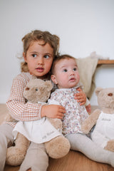 Order Honey Bear White & for no extra cost, we will embroider one name on his overalls. Personalise your teddy with beautiful embroidery, crafted right here in Melbourne.