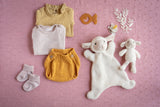 We have designed these feather-soft mini rattles to allow you to pair them with some of our favourite soft toy friends. The optimal size for teensy baby hands, the mini rattle will be sure to entertain your toddler too!