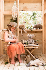 Shy Keith the Koala loves to give the fluffiest cuddles, he has the fleeciest ears & softest chest you'll ever find. Sporty Kylie the Kangaroo makes a delish bush tucker brekkie & loves perusing the self-help section at her local bookstore. Eddie the Emu has the most luscious feathers & is a very effective life coach. Nothing makes Pete the Platypus happier than lying on a sunny rock pondering the world while sipping on a dragonfly rivergum daiquiri. Although Wally the Wombat is one of the more mature-aged and slowest friends on the cattle station 400km west of Byron Bay, he always seems to be getting lost.