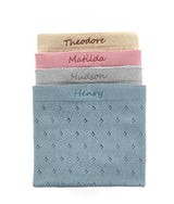 Order one of our Pointelle Baby Blankets & for no extra cost, we will embroider it with a name of your choice. The quintessential present for baby showers, adding personalisation to your Nana Huchy baby blanket creates an instant keepsake that will stand out from the crowd & delight new parents. Personalise your blanket with beautiful embroidery, crafted right here in Melbourne.
