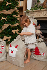 Generous in size & made with love from 100% ecru linen, our Personalised Santa Sacks are begging to be filled with gifts & goodies. Our classic Christmas sacks look stunning beneath the tree or at the foot of a child's bed, becoming an instant family heirloom to pass down through generations.